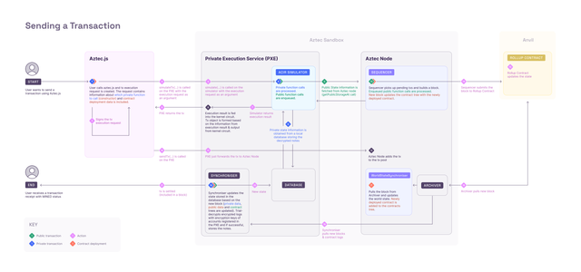 - The role of components like PXE, Aztec Node, ACIR simulator, and the sequencer
